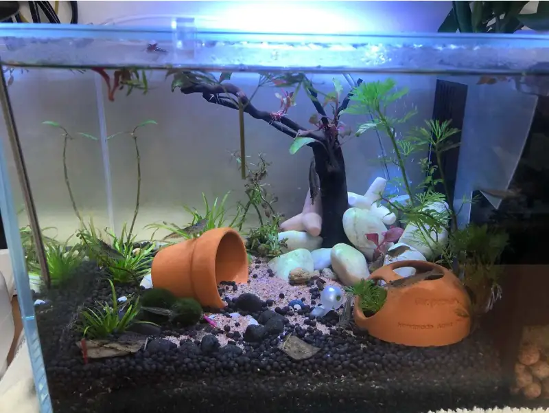 유목에 수초를 붙이고 다양한 수초롤 꾸민 나의 첫 수조.