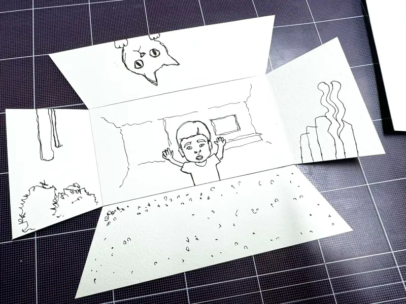 우선 모양을 생각해서 종이를 맞게 잘라준 후 간단한 스케치를 했어요