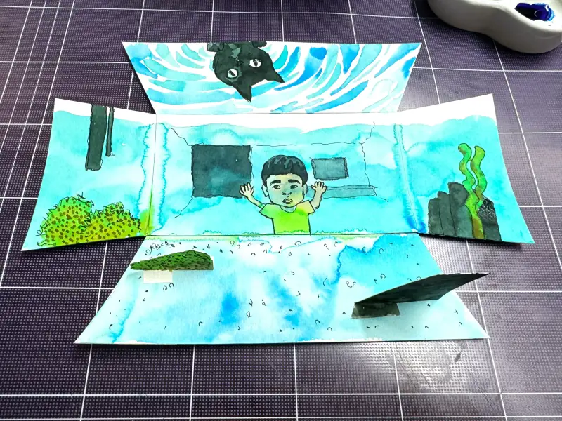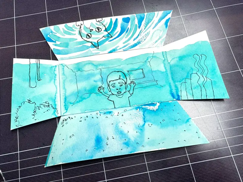 역시나 주력인 에코라인 잉크로 물속 컬러를 생각하며 터콰이즈그린과 울트라 마린딥으로 적당이 밑색을 채색했습니다