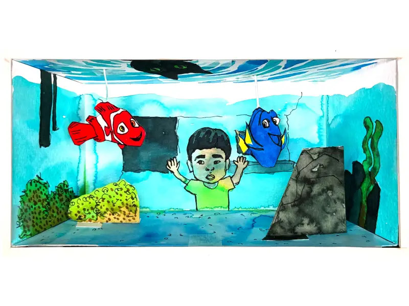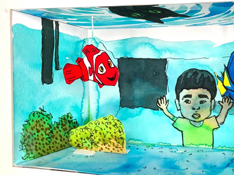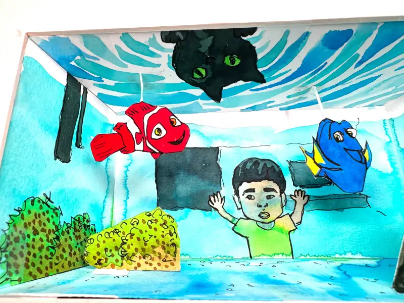 지난번 니모를 혼자 두었었는데 외롭지 않을까해서 이번엔 친구 하나를 더 만들어 주고 밖에서 아들래미가 니모를 바라보고 위에선 고양이 한마리가 호기심 어린 모습으로 어항 내부를 보는 모습을 연출 해봤습니다.