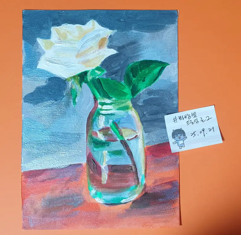 아크릴 물감으로 장미를 그려봤어요.