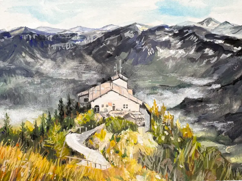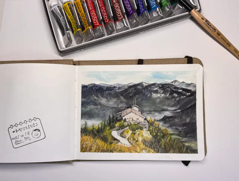 혼자 갔던 첫 휴가지 히틀러 별장으로 유명한 독일 남부 베르히테스가덴의 독수리둥지를 그려보았어요😆