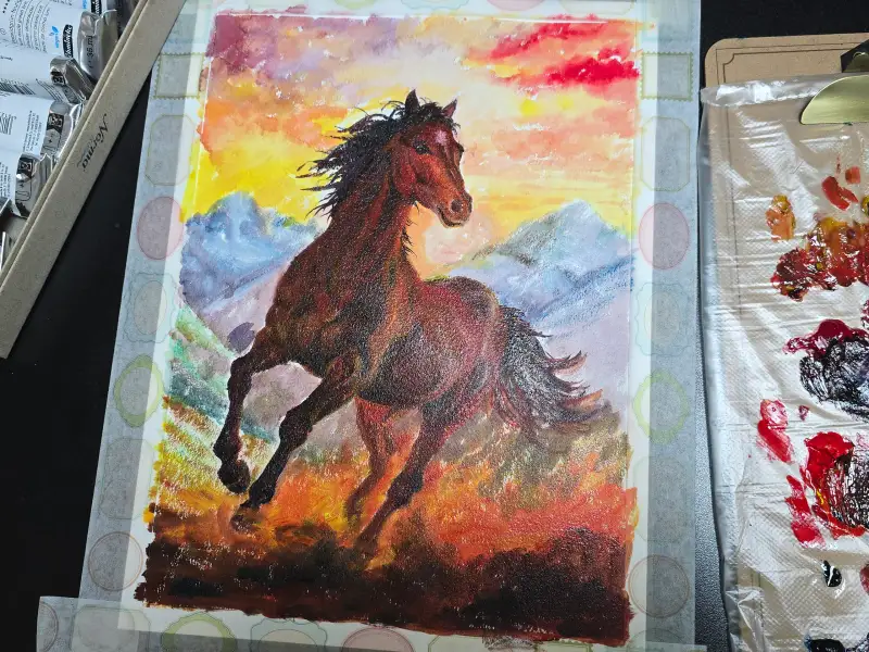 유화물감인데, 수채화처럼 배경을 칠했어요....