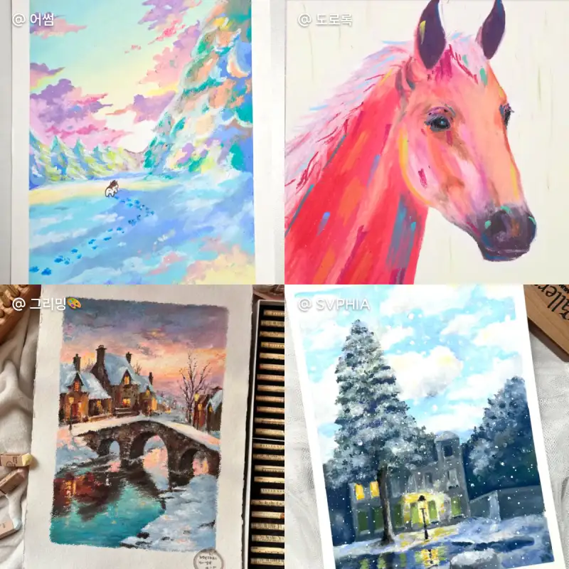 오일파스텔을 주로 쓰시던 엔나 작가님께서는 유화를!