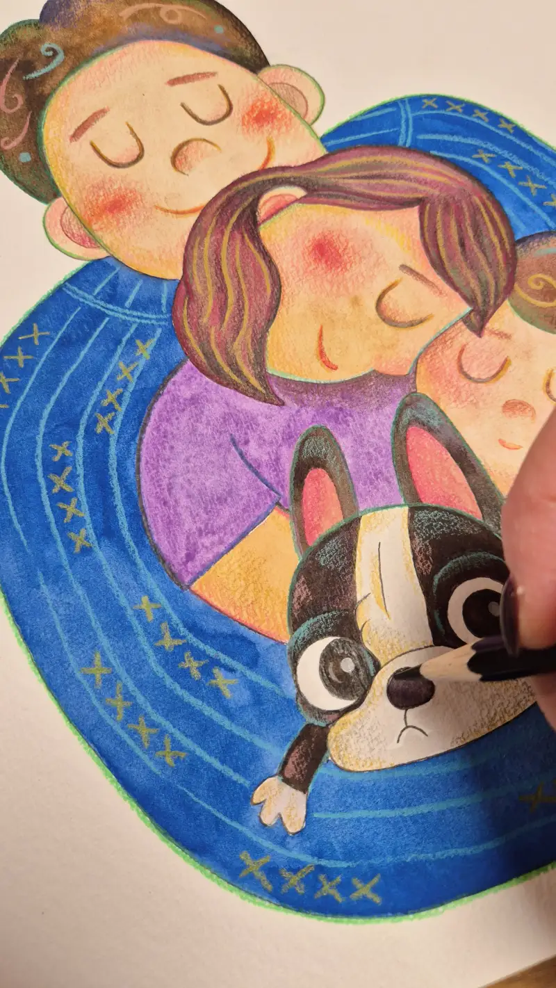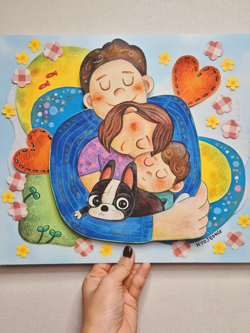 저희는 "아기안기"라는걸 자주해요. 저희 아들이 애교가 무지 많거든요. 엄마 품에서 "아기안기하자~"하면 폭 안겨요. 그 모습을 그려보고 싶었어요. ❤️