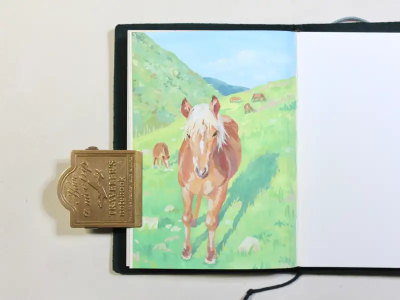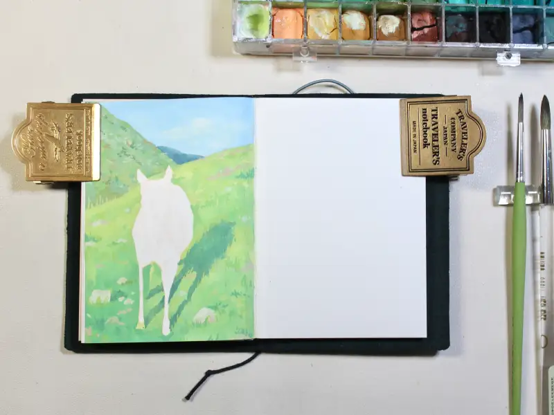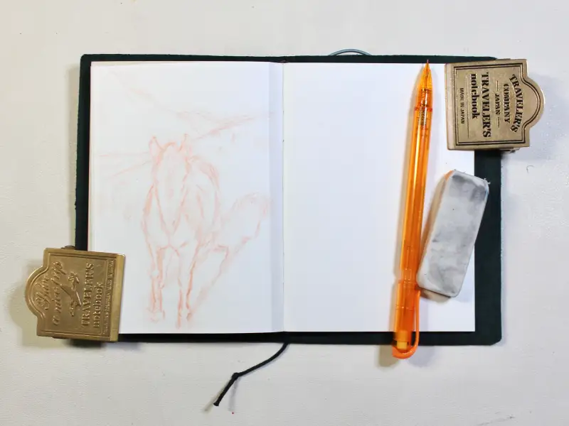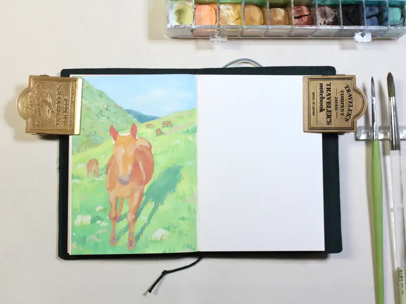 푸른 초원 위 자유로운 말을 컬러샤프로 스케치하고