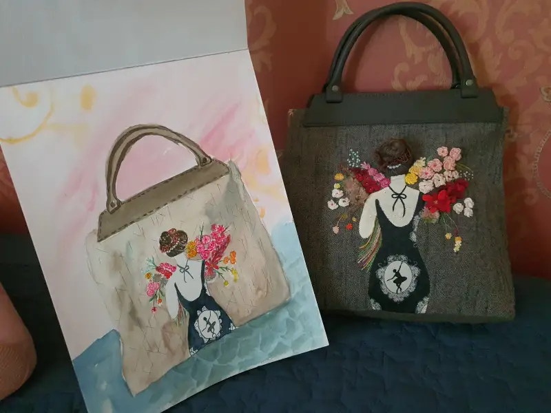 가방디자인 꽃과소녀에 포커스를 둔 그림입니다