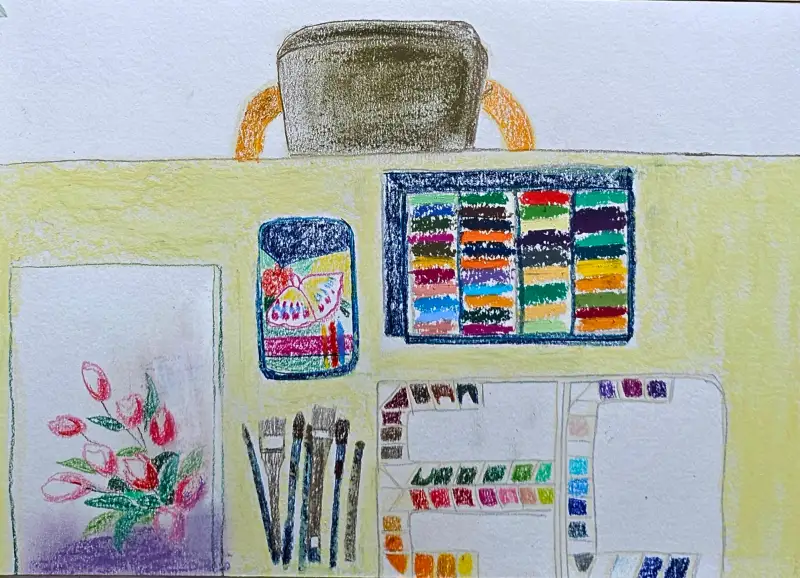 드로잉로그 14기 그림도구가 놓여있는 책상