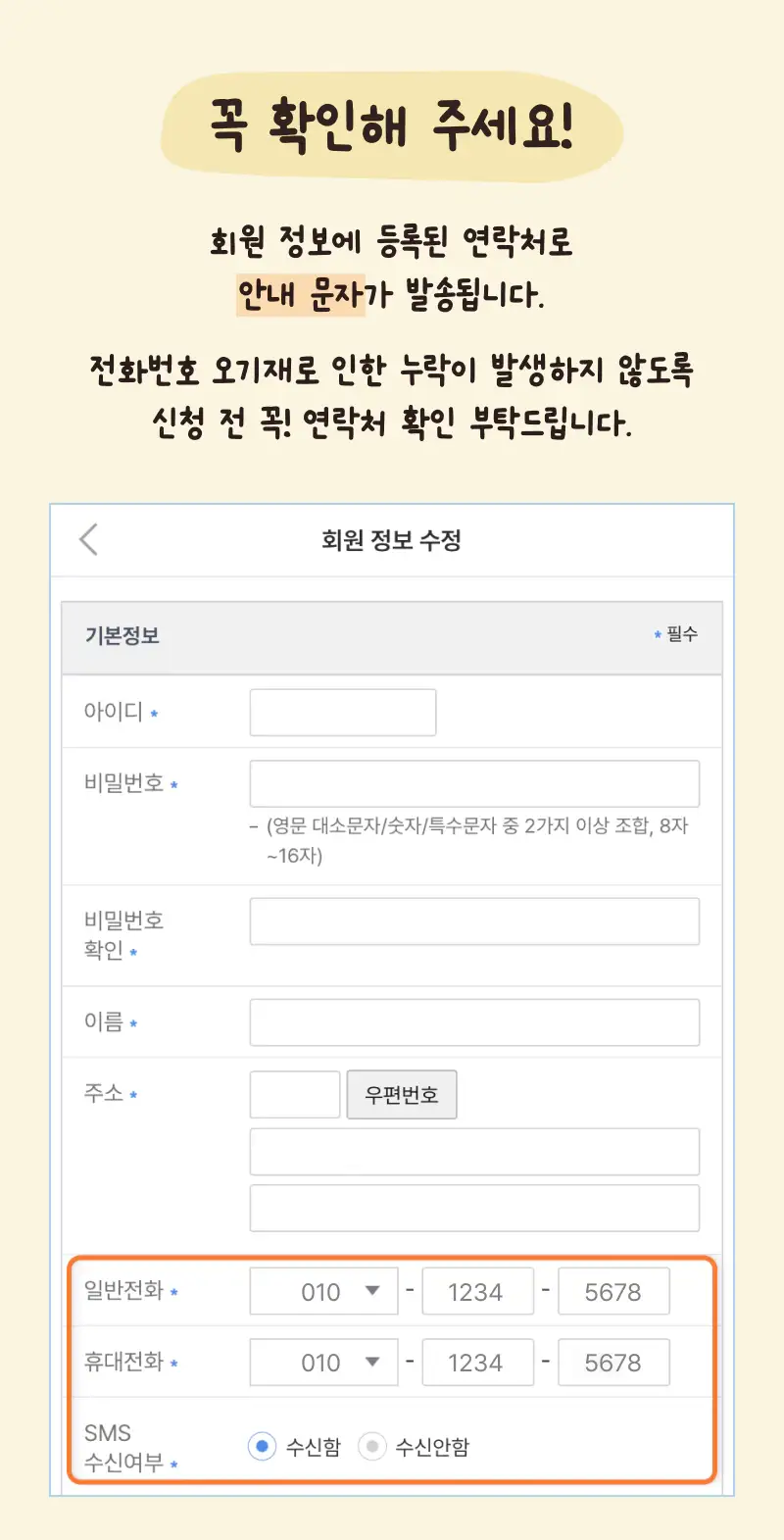 ( ✔ 회원정보에서 연락처 확인은 필수!)