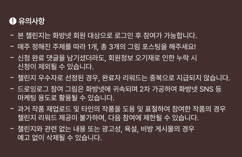 ✔ 참여장소 : 화방넷 커뮤니티 ➡ #드로잉로그 게시판