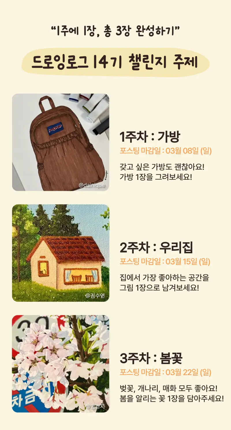 드로잉로그 신청 시 매주 잊지 않도록 주차별 주제와