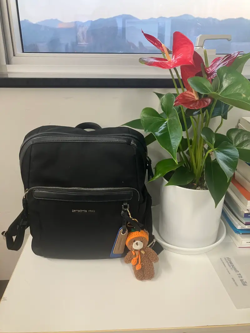창가가 보이는 전망 좋은 곳이 가방 자리에요.