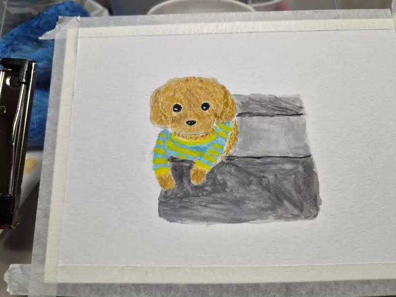원래 강아지가 베이지색인데 처음 쓰는 과슈라 색 만들기가 쉽지 않네요 ㅎㅎ