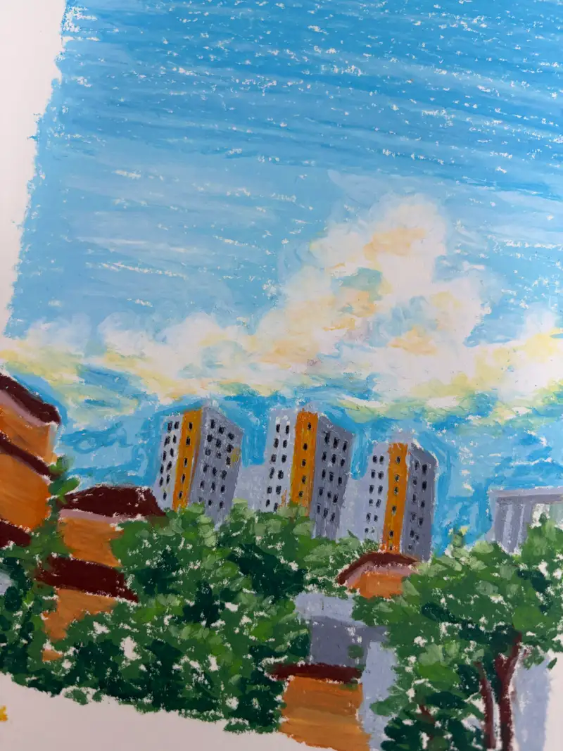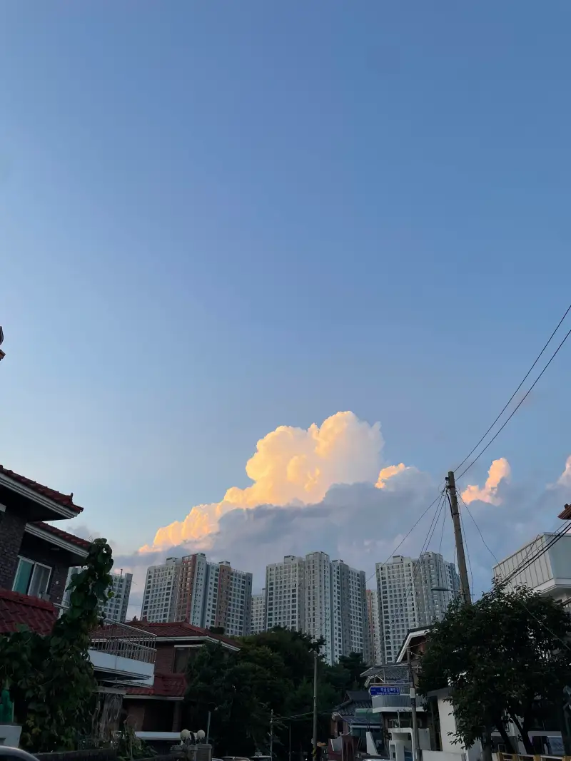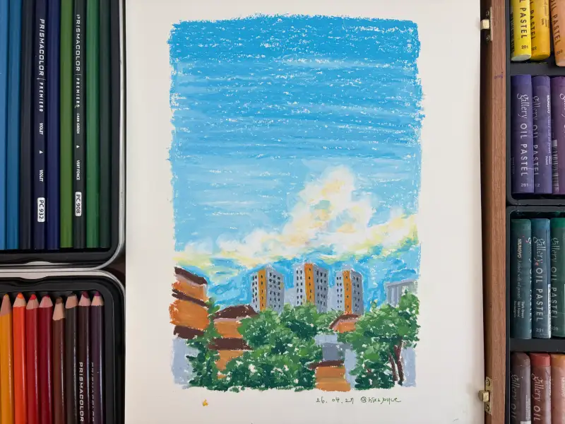 집 주변 산책길에 찍은 사진을 그려봤어요. ☺️ 구름이 멋있어서 찍었는데 표현이 조금 아쉽네요 ㅎㅎ ☁️