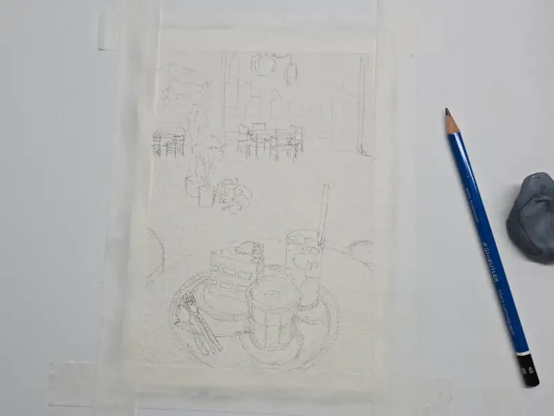 수채화 그릴 때 최대한 지우개를 안쓰는 것이 좋다고 해서 떡지우개로 찍어주는 정도만하고 지우개질 없이 스케치를 끝냈습니다ㅎㅎ;;