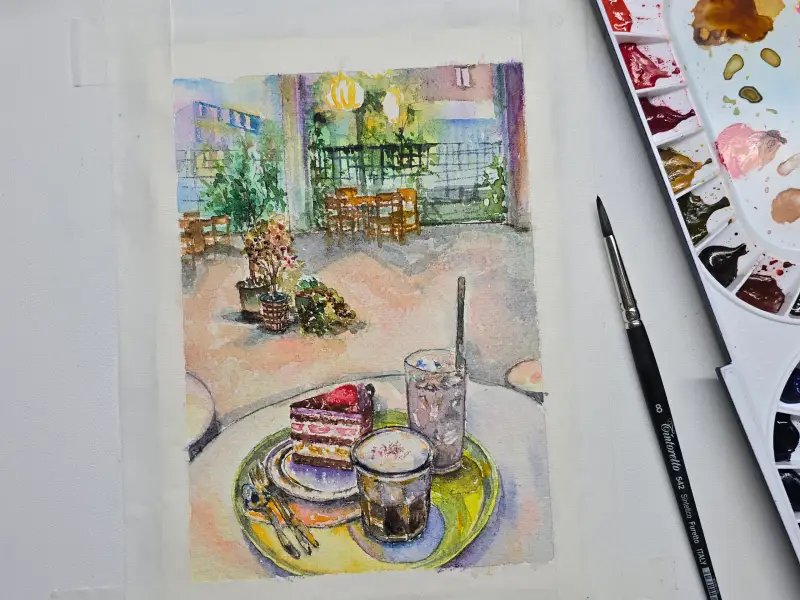 수채화 그릴 때 넓은 면적 칠하는 것이 정말 어려워요~~~