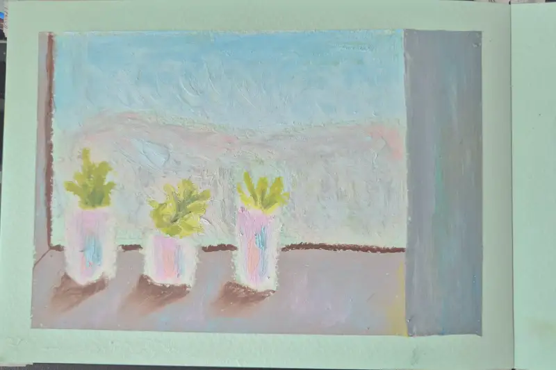 위 그림은 문교 소프트 오일파스텔로 그려봤어요. 꾸덕꾸덕하고 예쁜 색감이 그냥 잘 조합해서 칠하기만 해도 감각있어보이는 색조합을 만들어줘서 요즘 손이 자주 가요. 창문앞 선인장 풍경입니다.