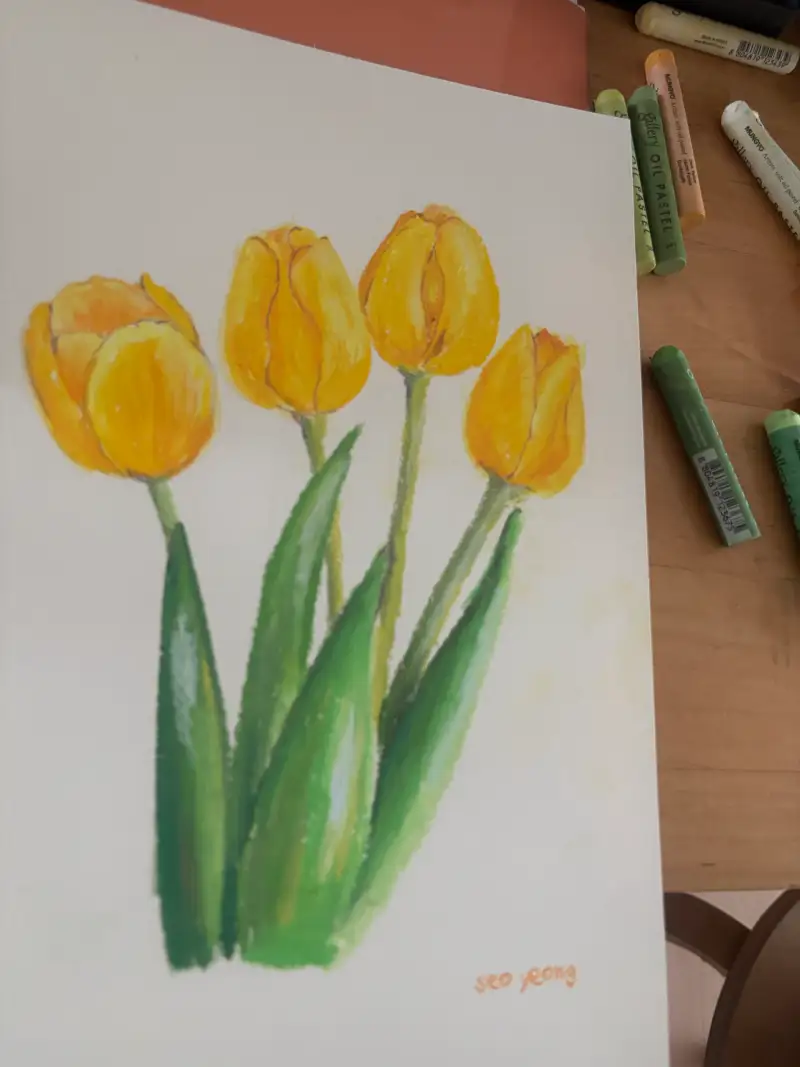 봄하면 화사한 노란 튤립이 생각나요