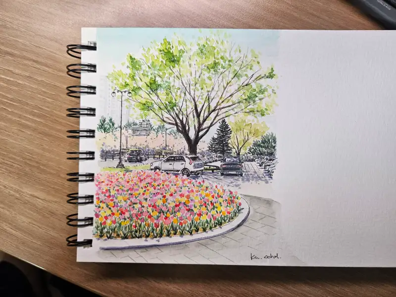 드로잉로그 15기 1주차 - 튤립이 핀 봄 풍경