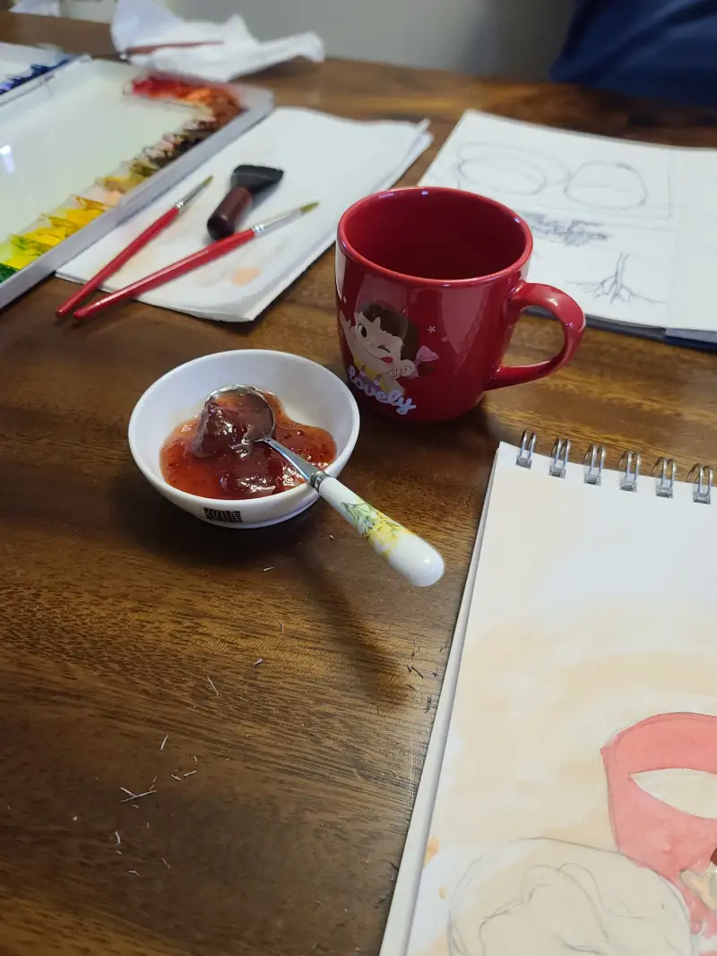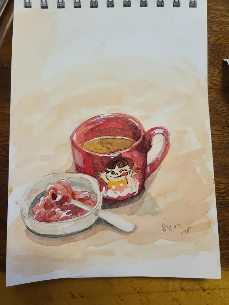 오늘의 홈 카페. 빠리지앵의 믹스 커피와 달콤한 딸기쨈 입니다.