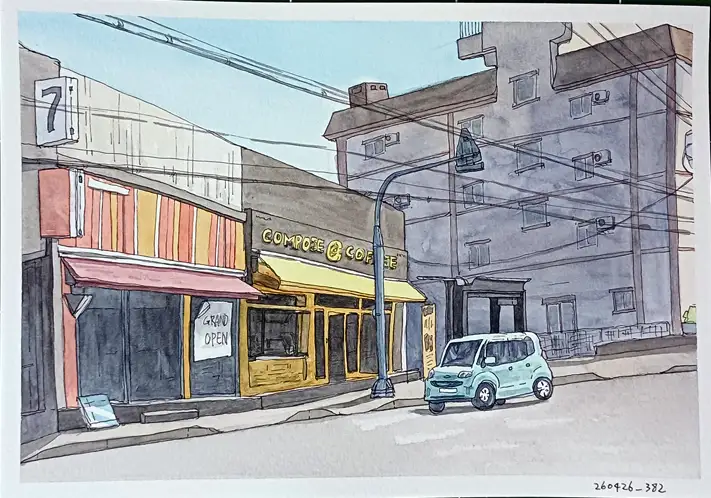 샛노란 차양이 인상적인 카페를 그려보았습니다!