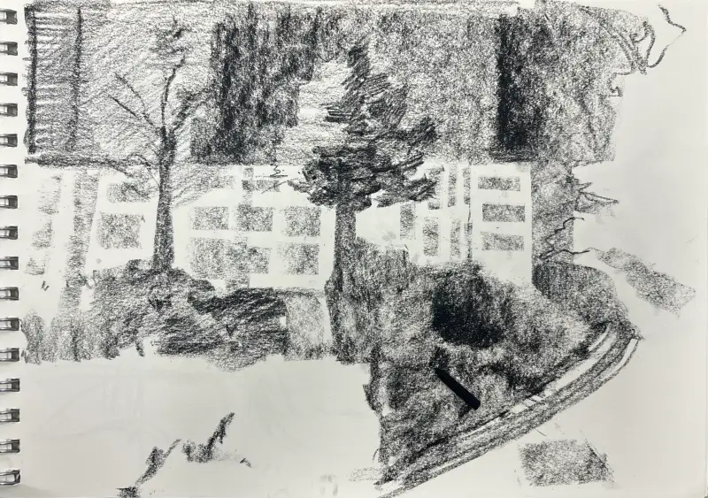 코가 간질간질해져서 목탄으로 그려보았다