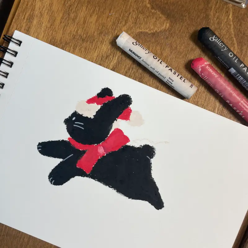오일파스텔로 질감 살려 두꺼운 종이에 그리고 가위로 오렸어요. 직접 만든 오너먼트 걸어두니 겨울 분위기 제법 나네요!