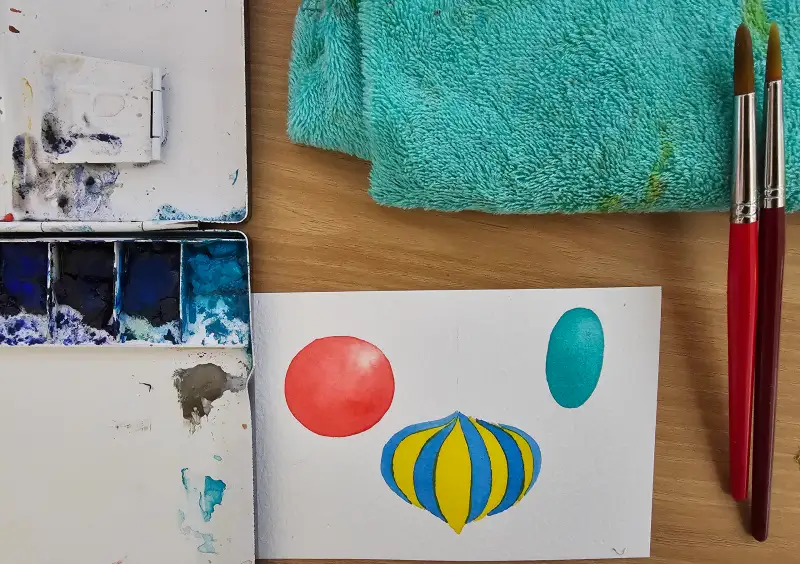 수채화로 밑그림을 색칠하고 펜으로 라인을 그려주고