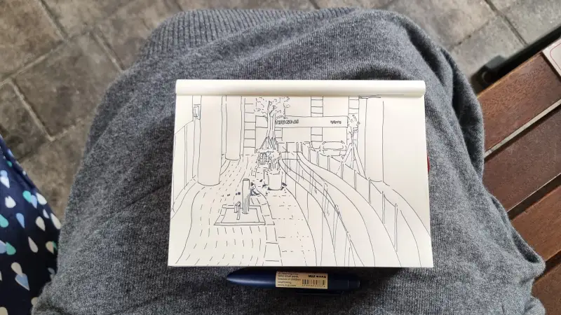 오늘은 고향에서 학교를 갈 때 자주 다녔던 카페을 그려 봤어요.밖에서 그림을 그리니 색다른 기분이예요~~
