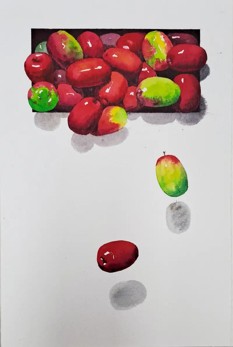 이목을 작가님의 대추 시리즈를 수채화로 따라 그려봤습니다.