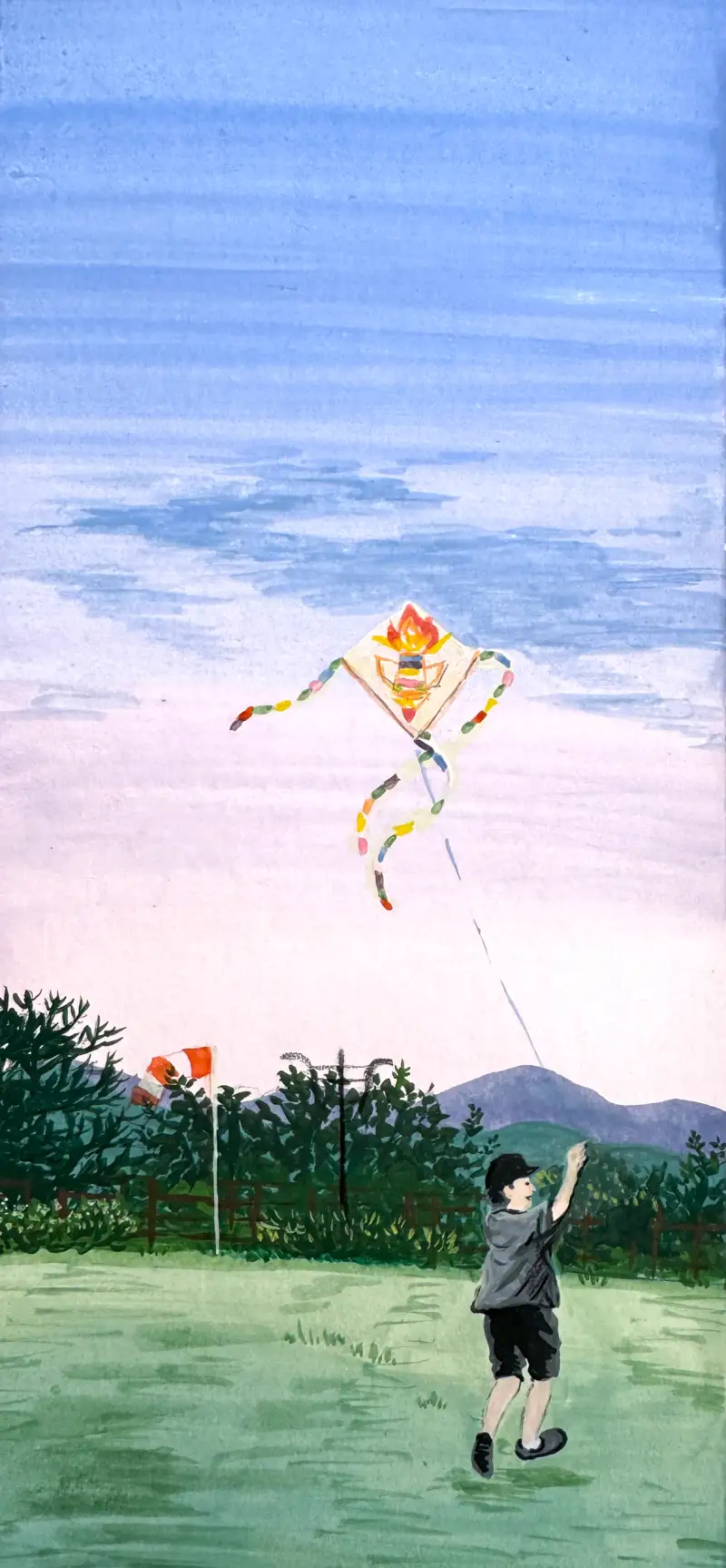 그 아래 알록달록한 연이 하늘높이 날아오르는데,