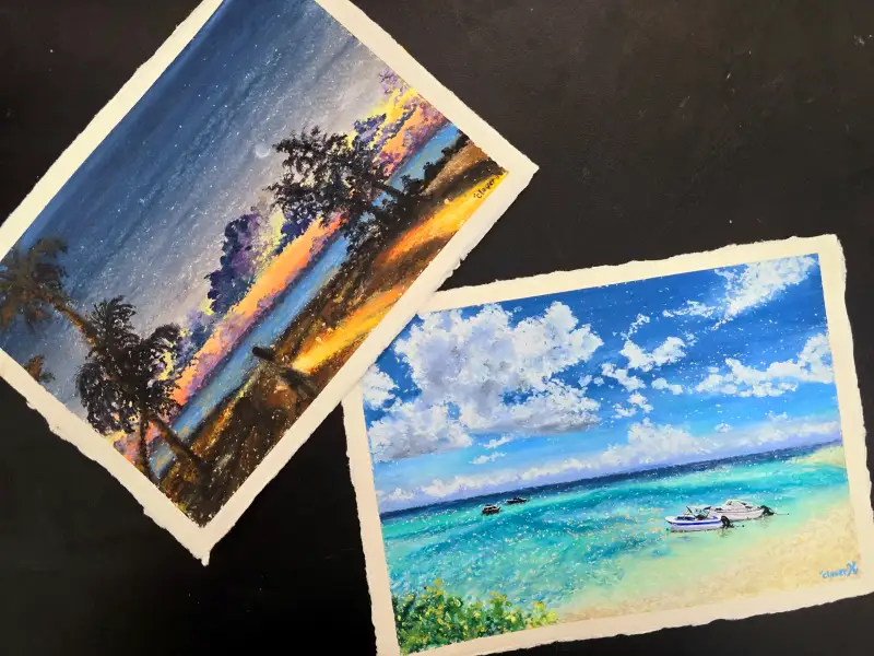 하는 맘으로 사진을 뒤적여 찾아낸 사이판의 아름다운 낮과 밤을 그림으로 담아봤다🥰