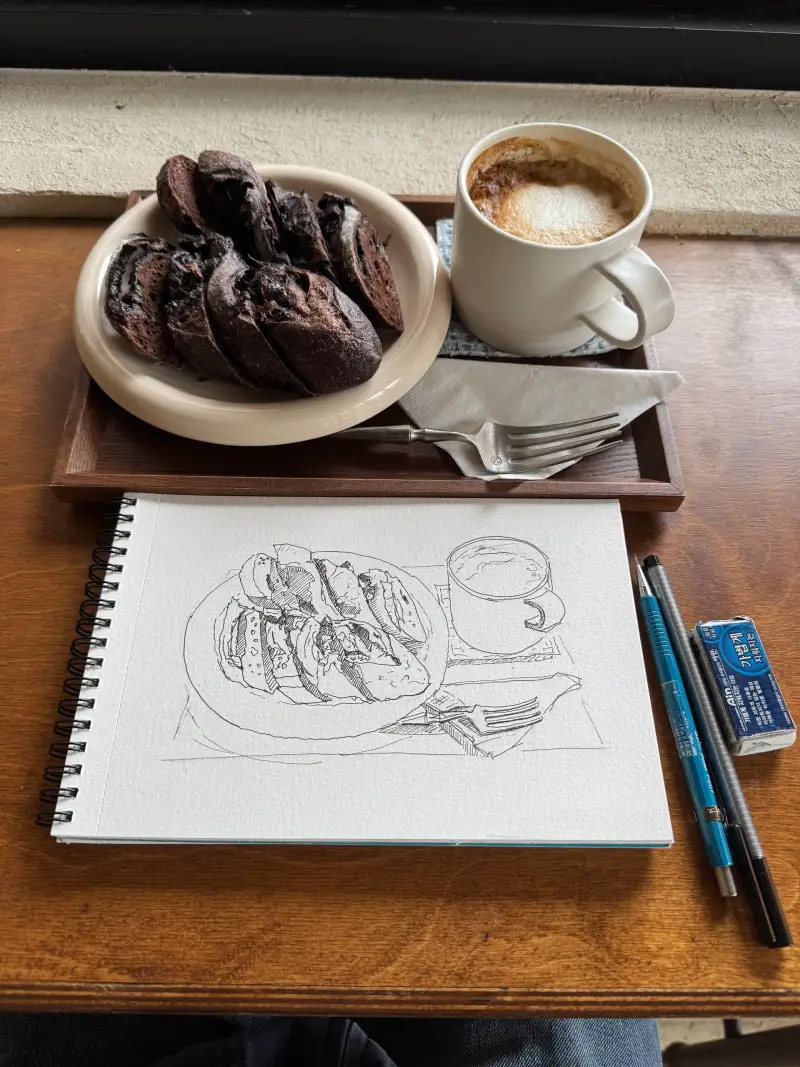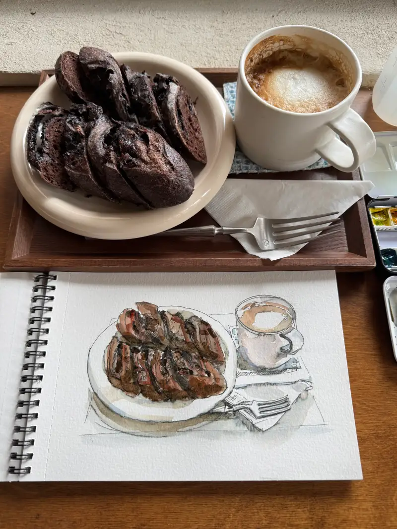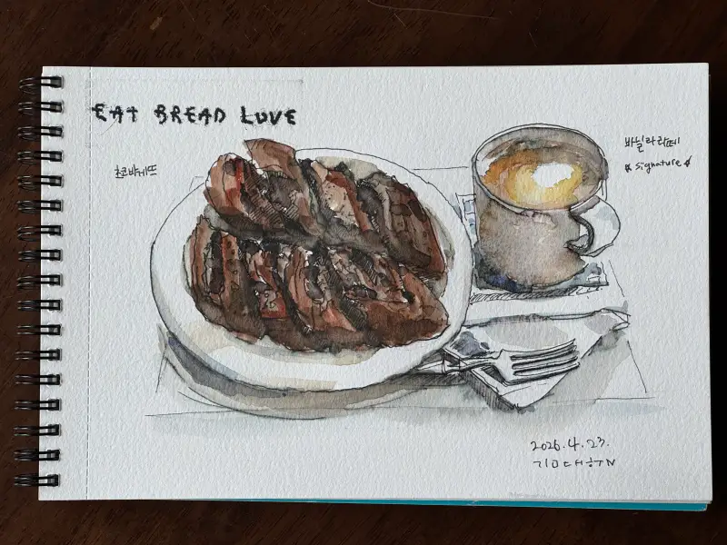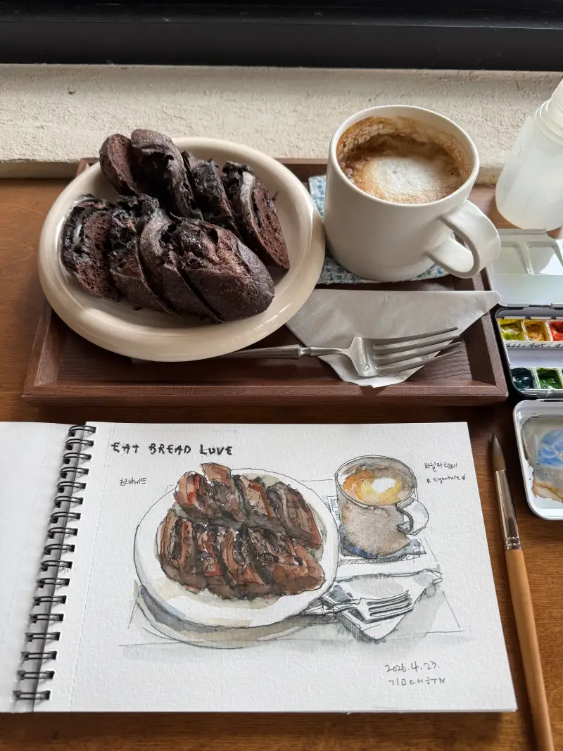 신상 빵을 맛보러 왔다가 그림을 그립니다.