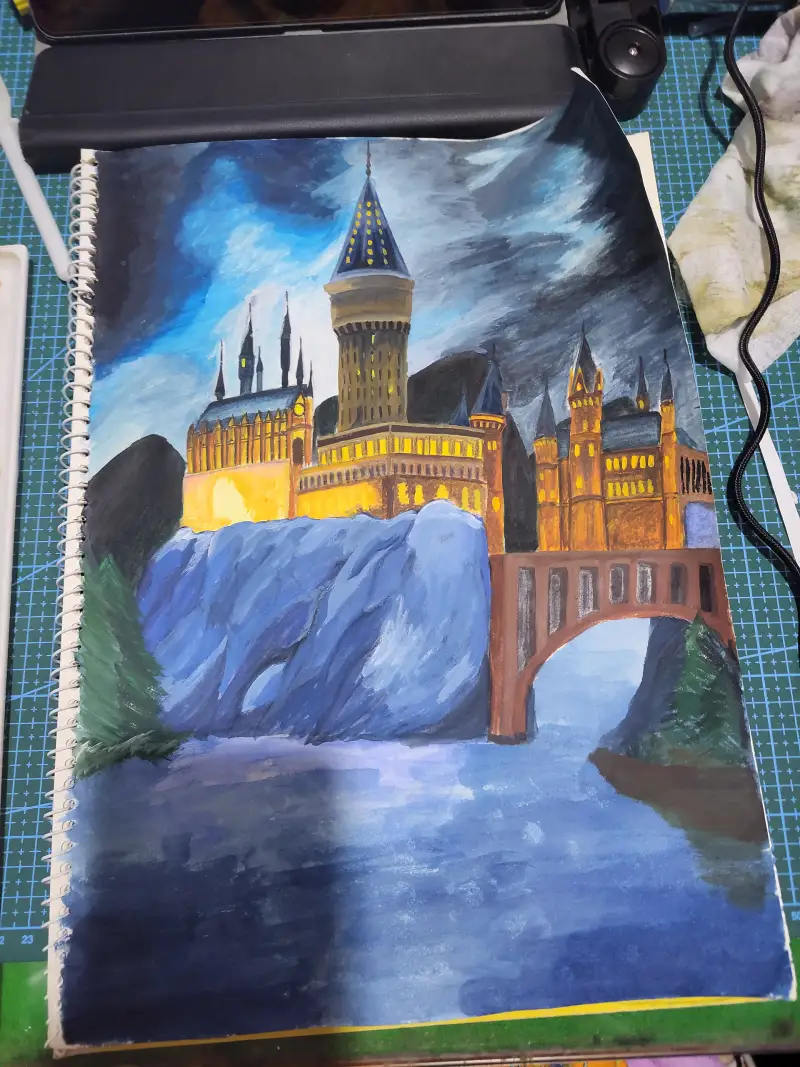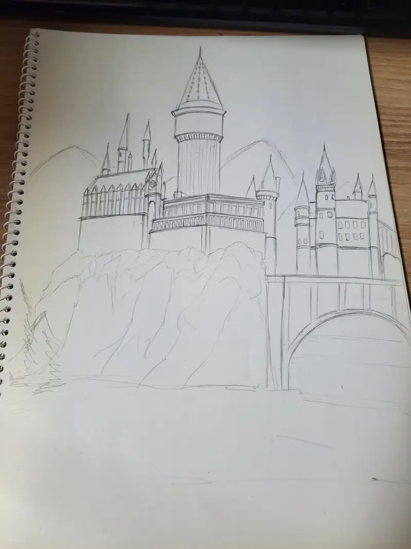 그래서 호그와트 그림을 검색해서 베껴그렸습니다. 성을 상상으로 그리긴 매우 힘들기에....