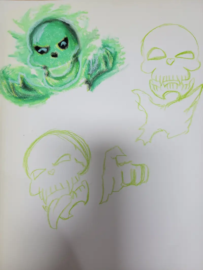 소설 속의 주인공이 다니는 마법학교 에인로가드와 학교의 마스코트 해골교장을 그려보려 합니다.