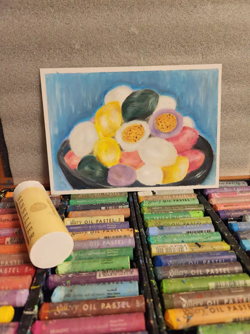 추석을 맞아 한국 디저트 송편을 그려봤어요.