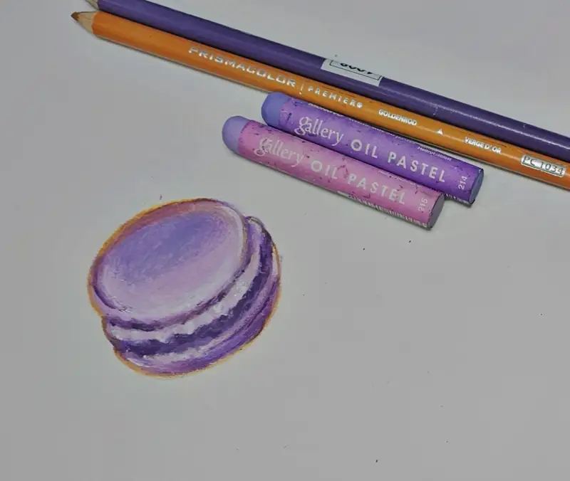 클래스101 아르냥 작가님의 마카롱 그리기를 오일파스텔과 색연필로 그렸어요