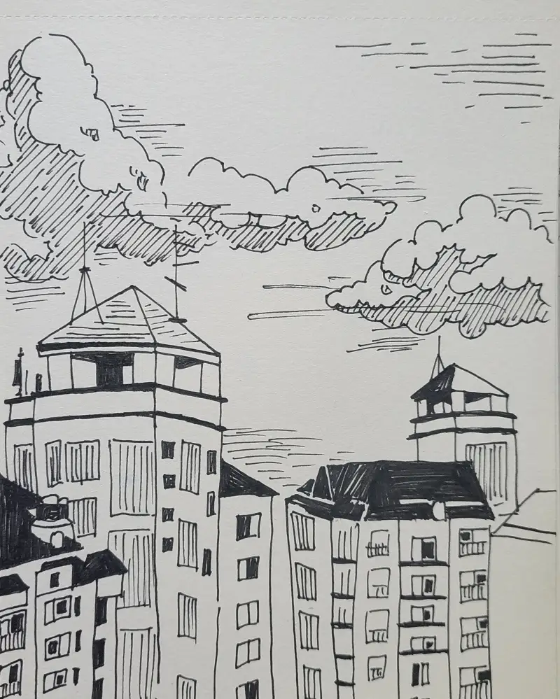 저희집에서 매일 보이는 풍경을 펜화로 그려봤습니다.