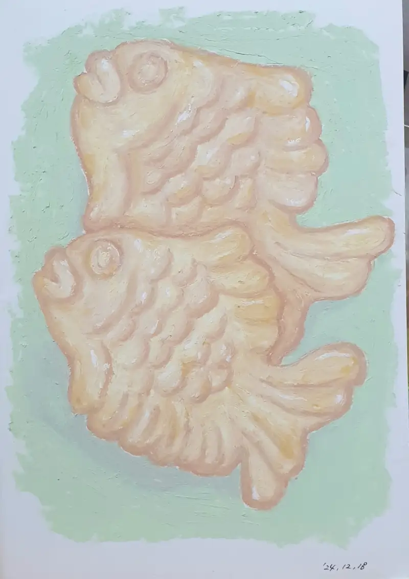 정확하게는 잉어빵을 사먹는거지만 이미 입에 붕어빵이 붙어버렸네요. 맛도 잉어빵이 더 좋지만 생김새는 붕어빵이 더 귀여워서 붕어빵을 그려봤어요ㅎㅎ