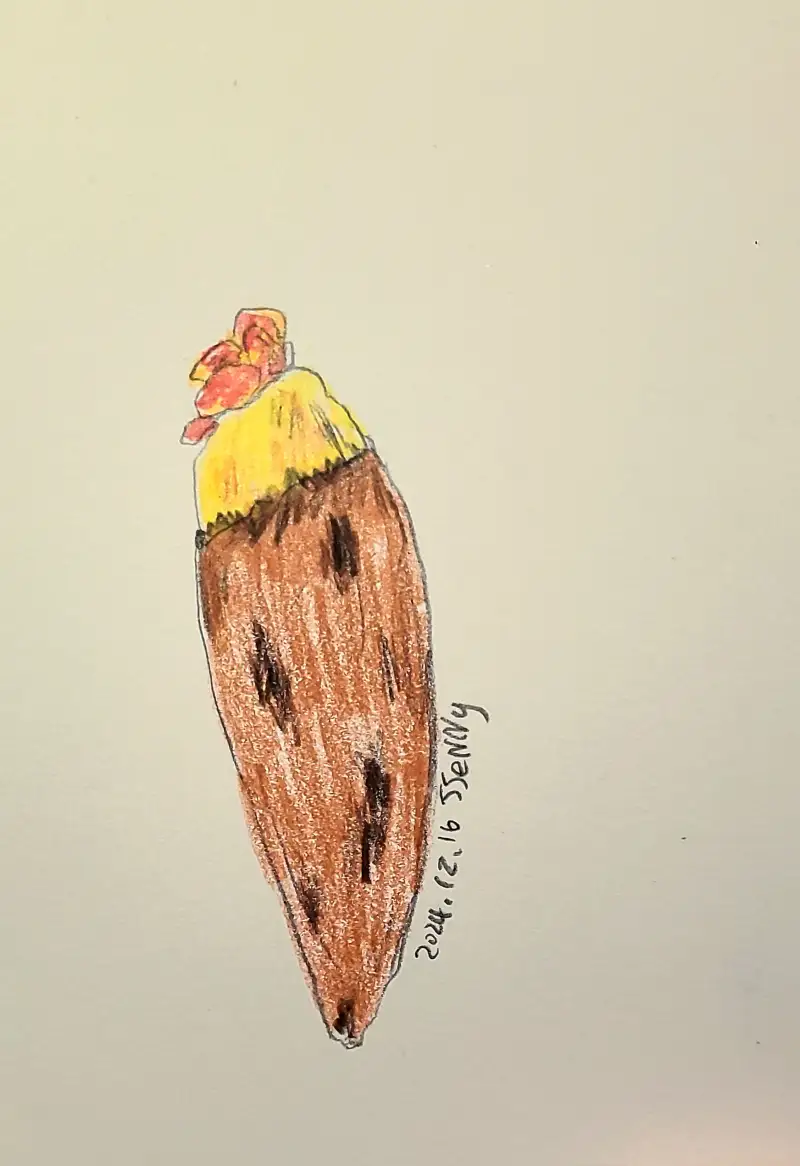 ☑︎ 군고구마는 볶은김치랑, 90×128mm, 색연필, 2024