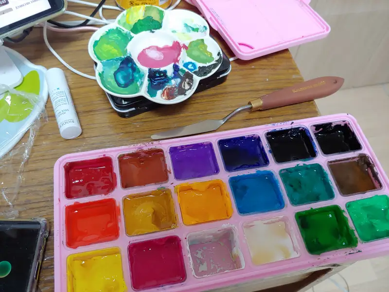 과슈는 미야18색인데 솔직히 색이 모자라요. 그래도 양이 푸짐해서 아낌없이 썼습니다
