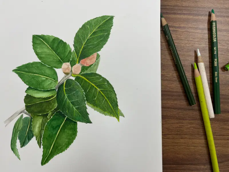 수채화 작업이 끝난 뒤 유성색연필로 완성도를 올려주려는데 문제가 조금 생겼어요. 종이 결이 거칠어 색연필이 너무 거칠게 보여지네요😭