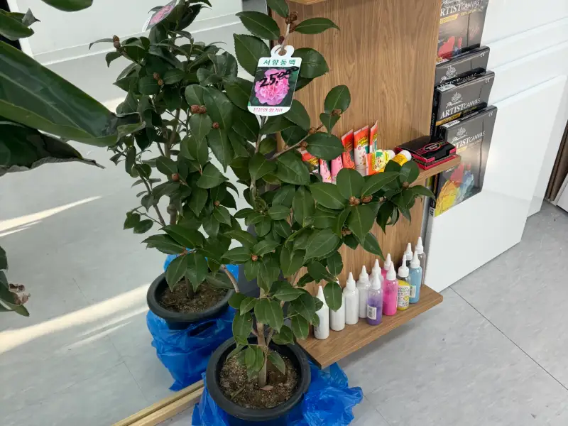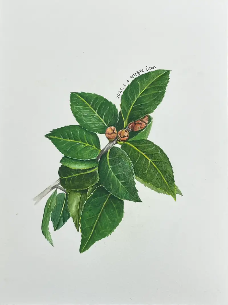 나에게 주고 싶은 선물, 뭘그려야 할까 고민하던중 직장 근처에서 예전부터 구매하고 싶었던 동백나무를 판매 하더라고요. 😍 곧 꽃을 피울거라는 꽃망울이 아주 많은 동백나무를 지나칠수 없어 얼른 데려왔어요. 서향 동백나무라고 하는데 향이 더 많이 난다고 하더라고요.
