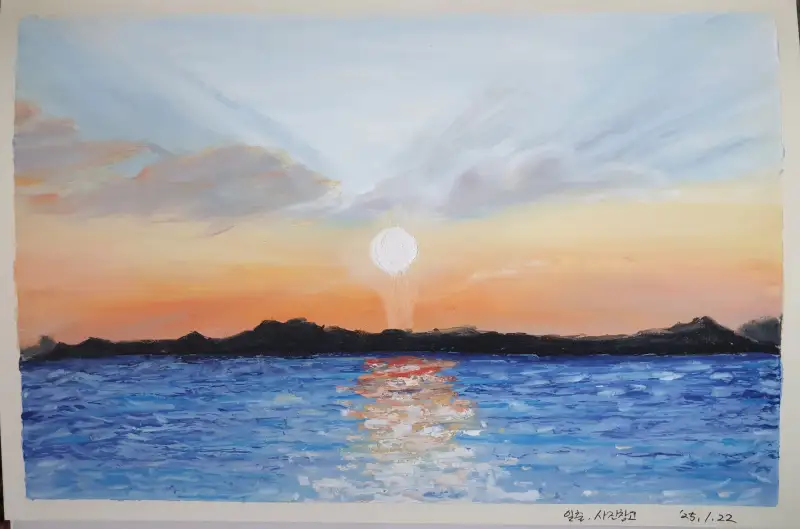 다들 새해 첫 해돋이 보며 소원 비셨나요? 전 집순이에 집 동쪽은 안보여서 자료를 참고해 그려보았어요.ㅎㅎ