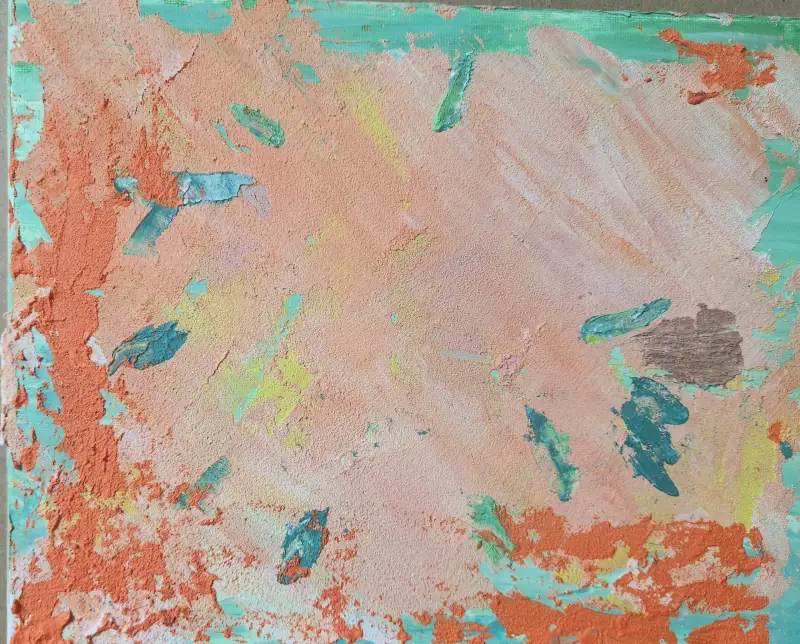 그냥 밋밋한 해돋이에 강렬한 느낌을 주고 싶어서 새로운 시도로 그려보았어요. 먼저 아크릴과 보조재를 활용하여 거친 느낌을 베이스로 깔았습니다.
