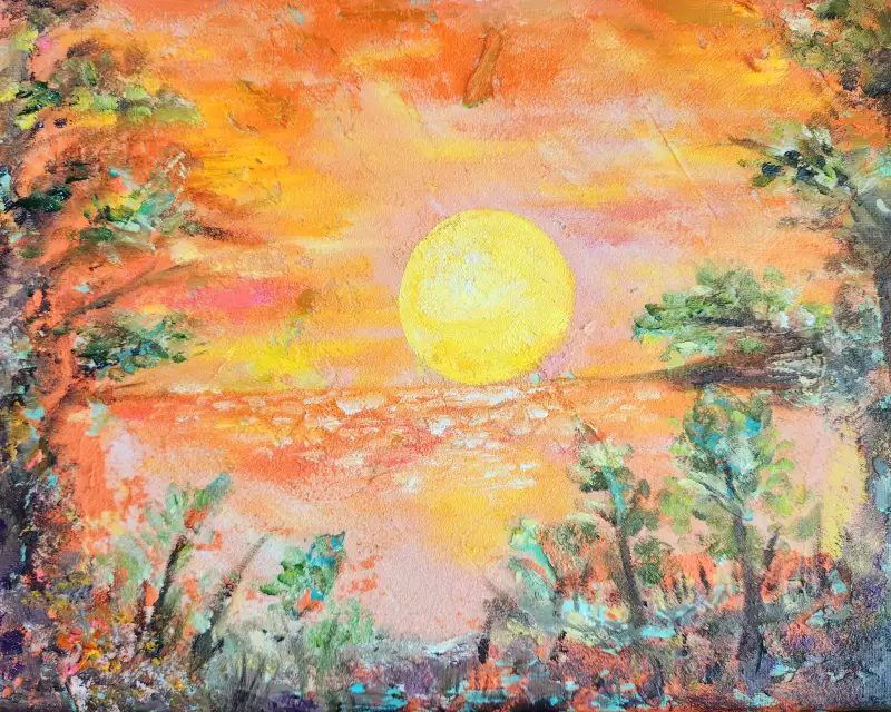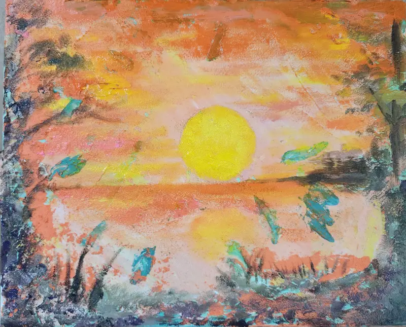 새로운 시도를 해보며 다양한 재료로 그려본 해돋이입니다.