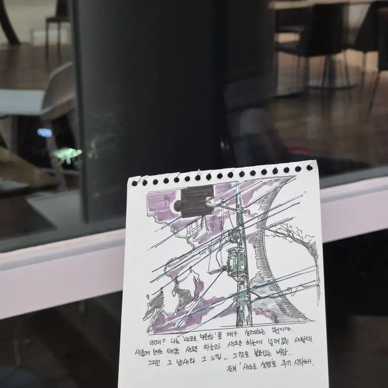 그나마 맘을 표현할 수있고, 가볍게 2025를 표현할 수있을 법한 내가 가장 좋아하는 펜형광펜화를 병원카페에서 그렸다.