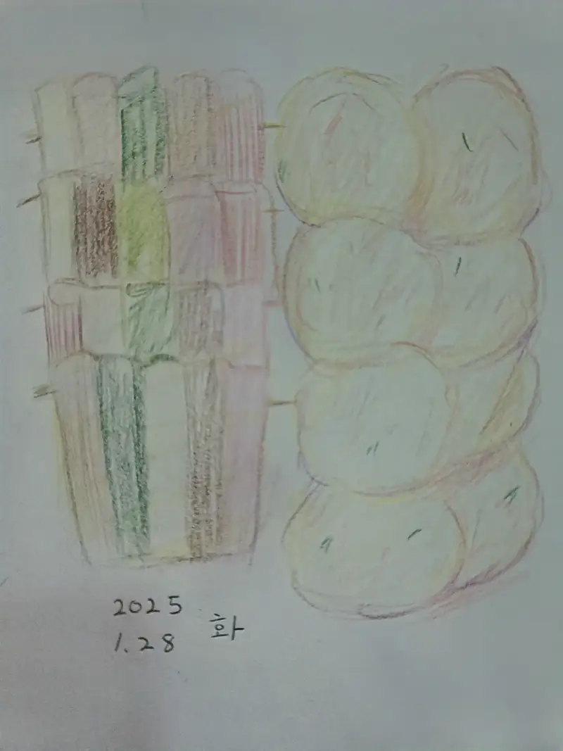 설날에 자주먹던 꼬치전과 동그랑땡이예요.