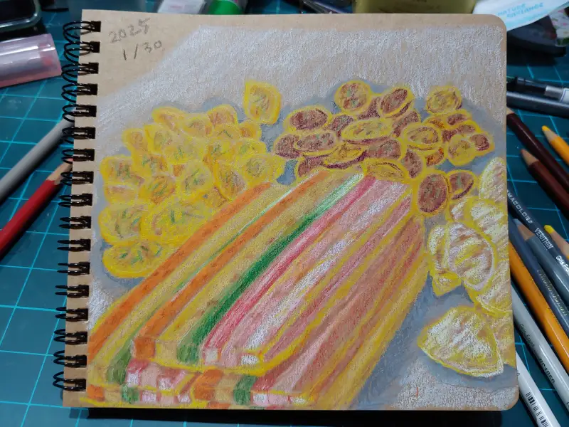 오일파스텔을 쓰려니 작은 전 알알을 그리기가 힘들겠더라고요