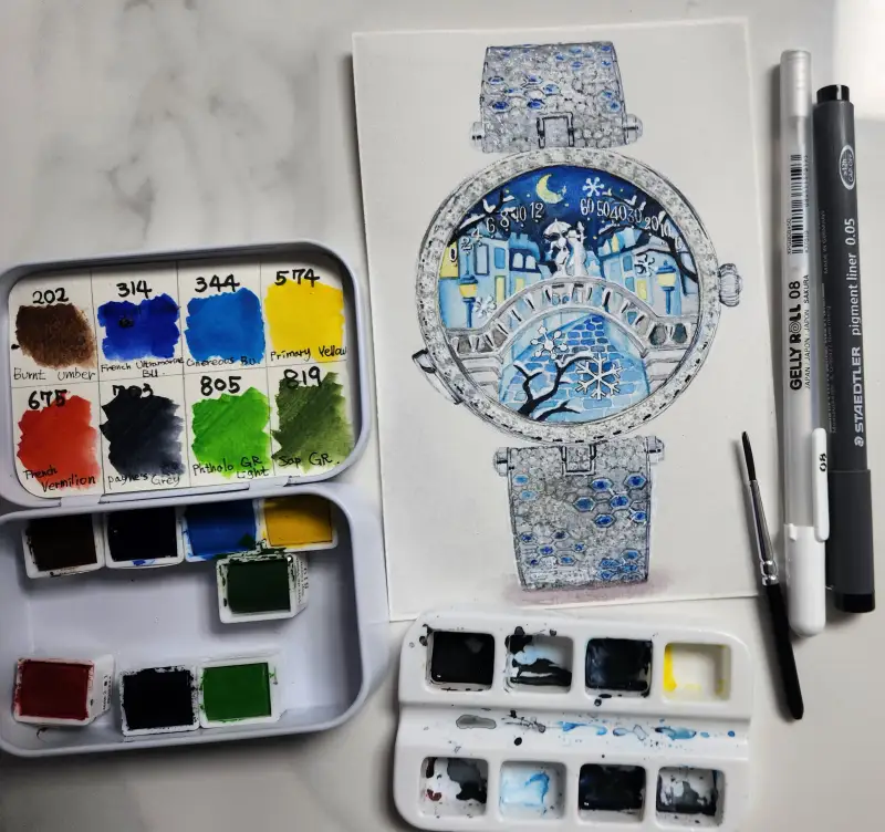 예쁜 시계를 제대로 못그려서 그 매력은 반감된 것 같지만,